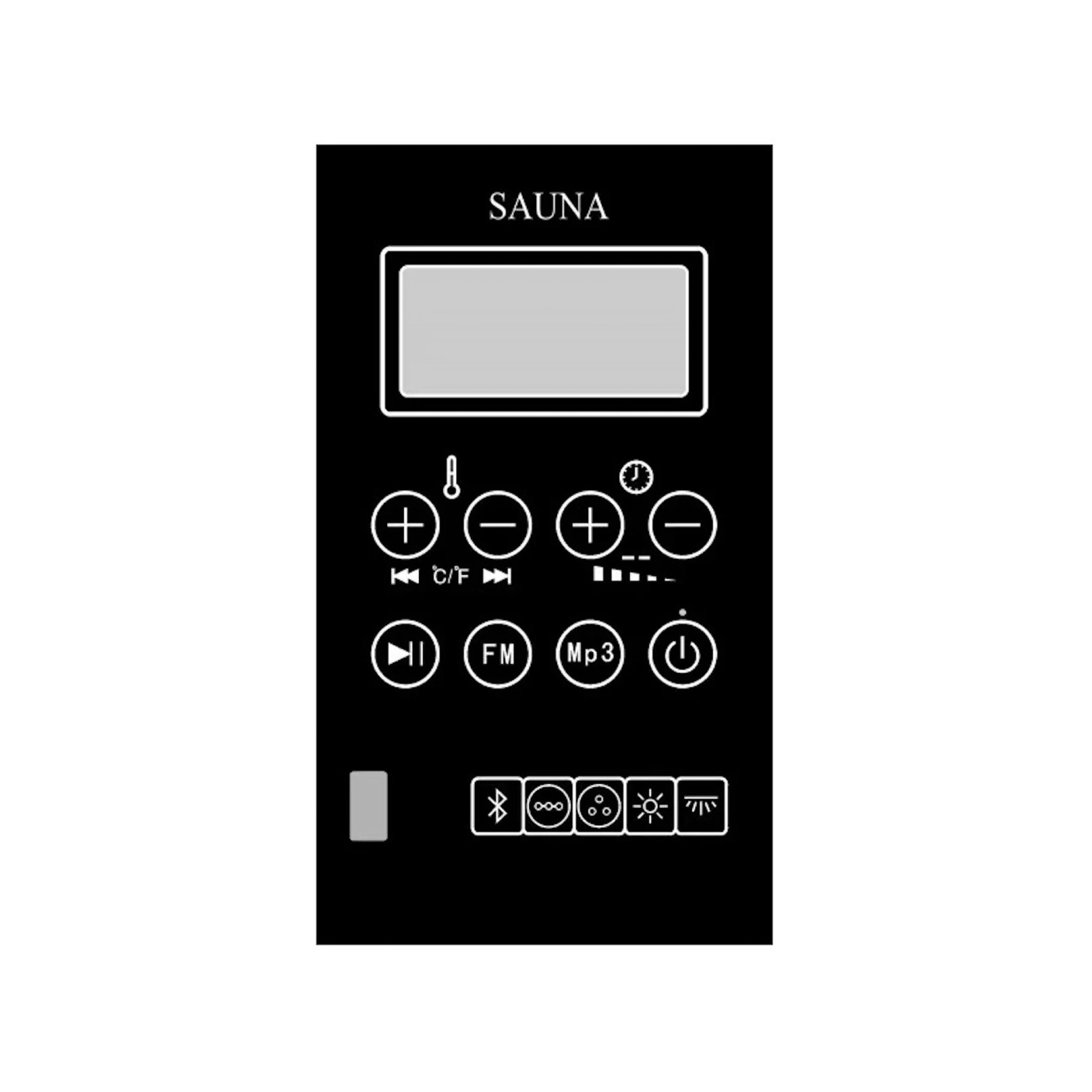 It comes with a digital control panel inside and out, plus a remote. It’s simple to adjust the heat or set a timer. There’s also an integrated sound system.
