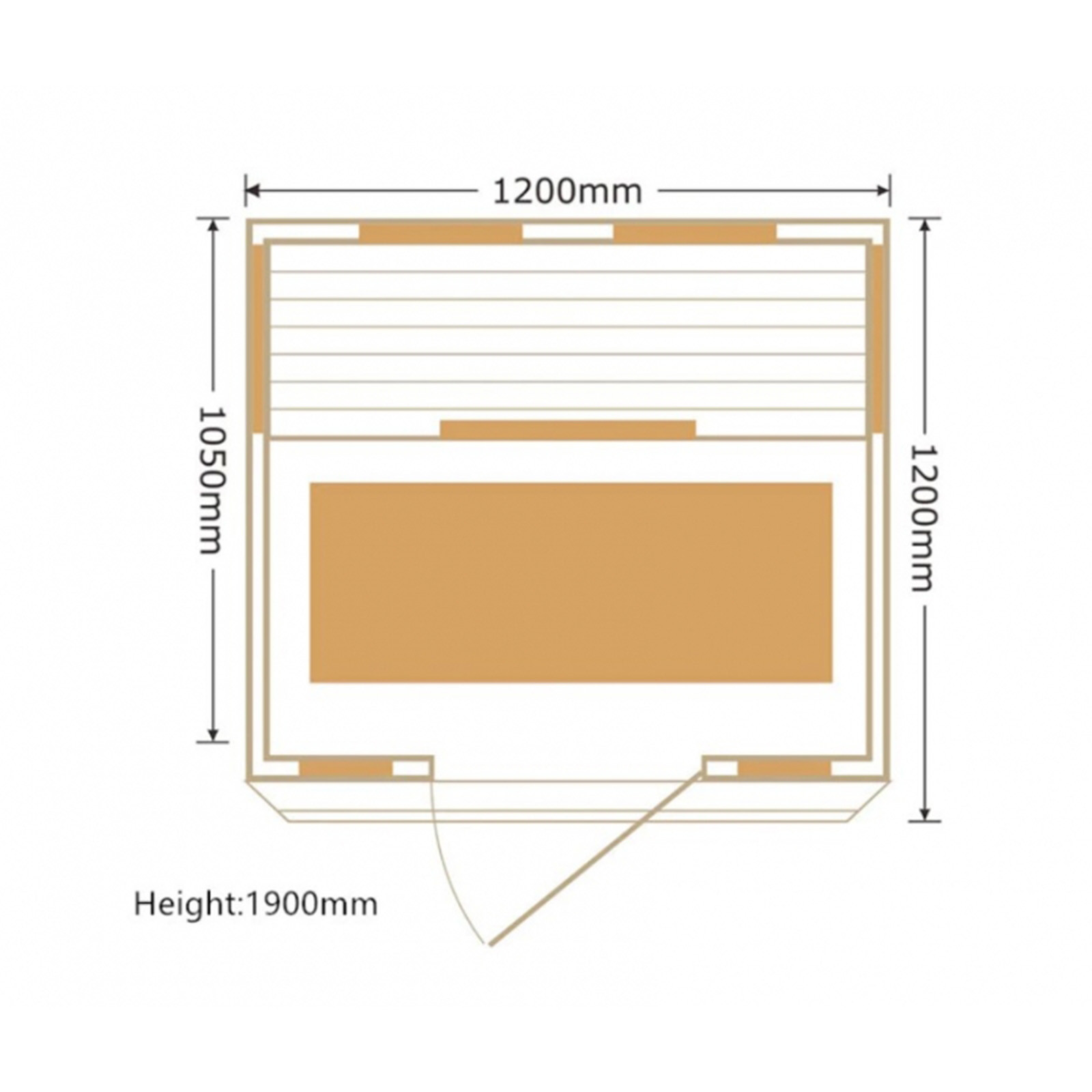 The sauna has a compact square footprint with enough space for two people to sit comfortably. It fits easily into a spare room, loft or home gym.