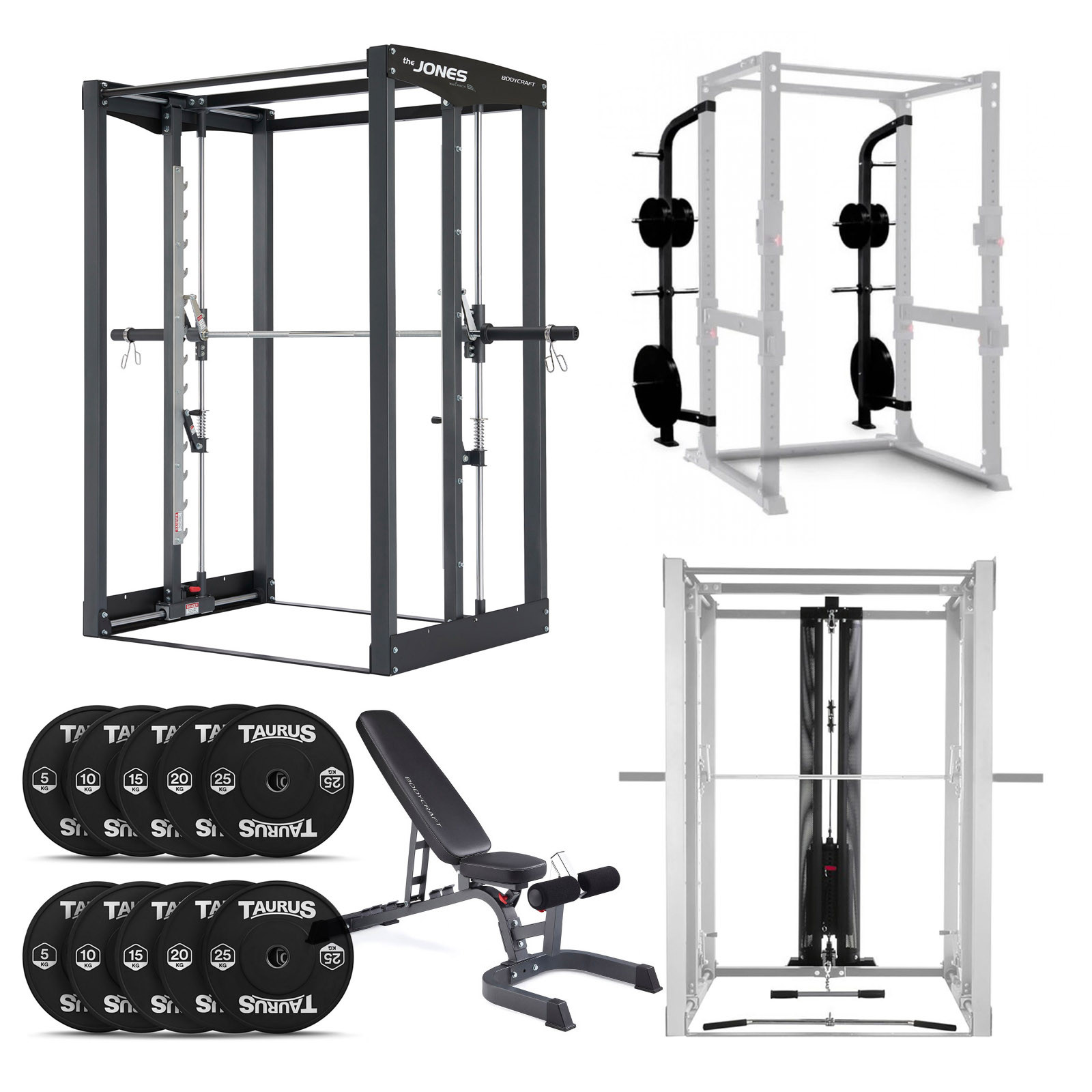 Bodycraft Jones Smith Machine + Lat Attachments + Plate Storage Attachment + 150kg Bumper Set + Bench