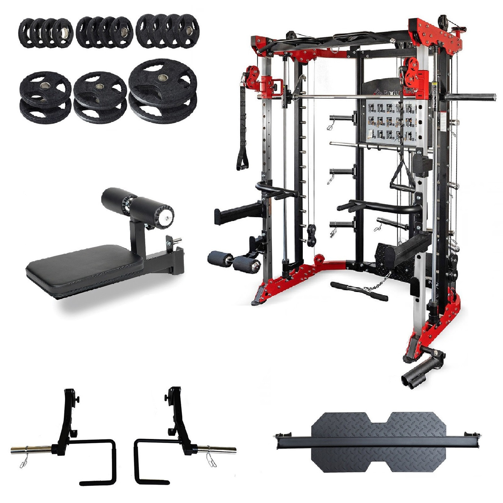 - Integrates a Smith machine, functional trainer, and power rack in one compact unit
