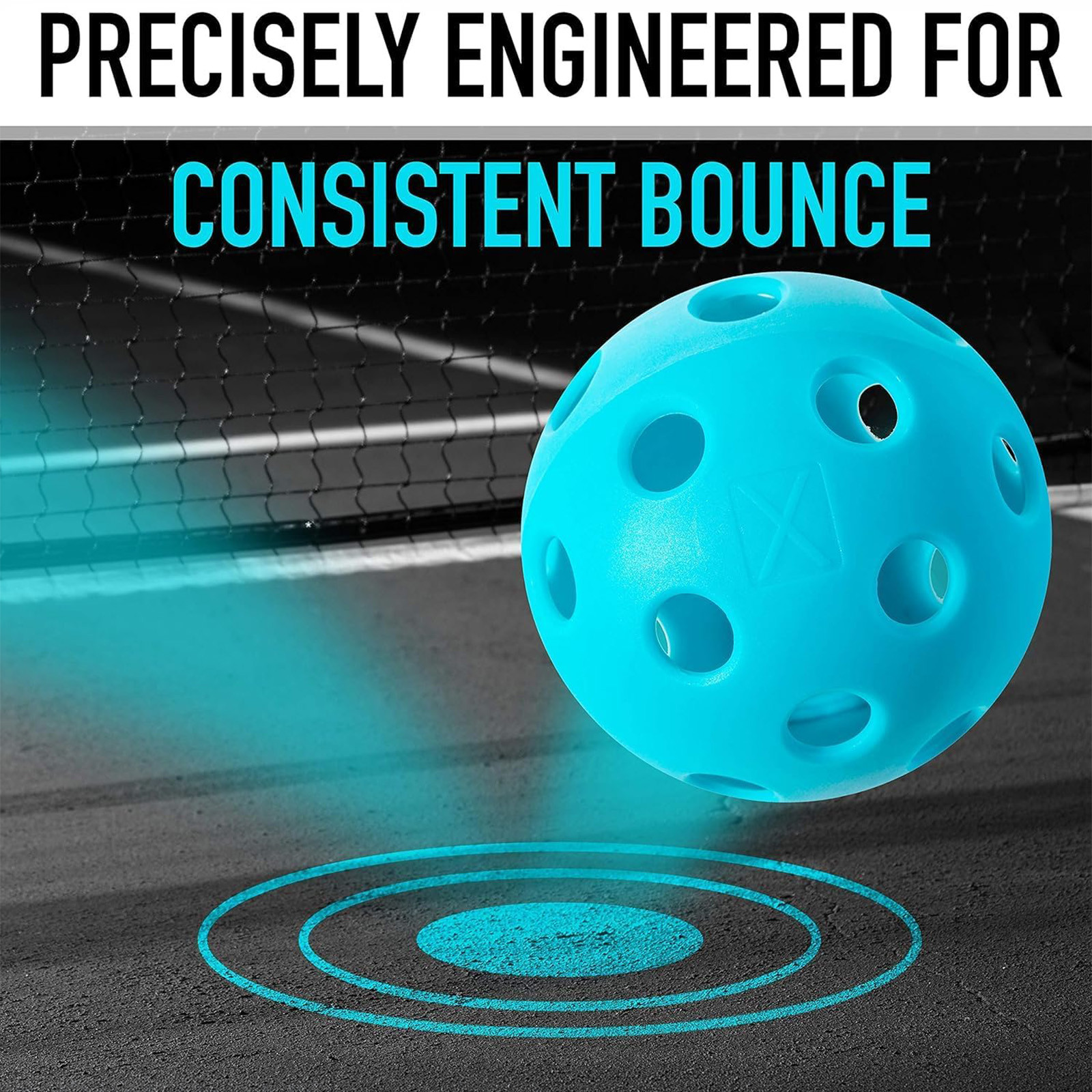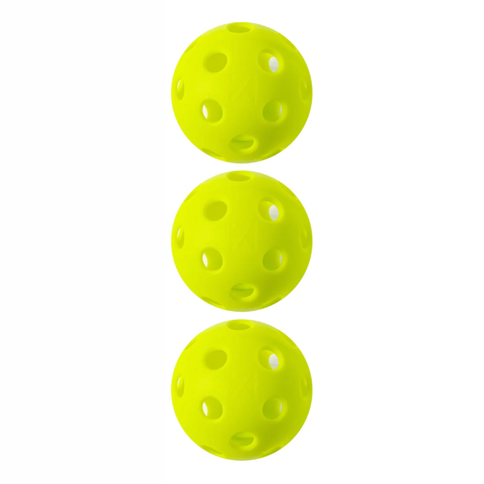 Franklin X-26 Indoor Pickleball Balls have 26 evenly spaced holes that help the ball travel smoothly across the court They are made from EVA material and follow official size and weight standards, with a 74 mm diameter and a weight of 26 g. The X-26 is approved by USA Pickleball for indoor tournament play. Each pack includes three balls and comes in blue or lime green.
