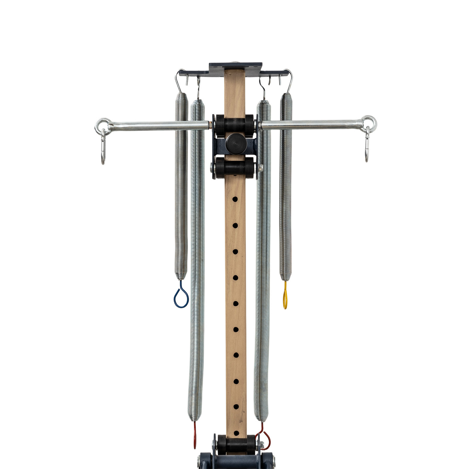 The steel frame holds firm during spring-loaded movement and postural work. It stays in place while you push, pull or stretch.