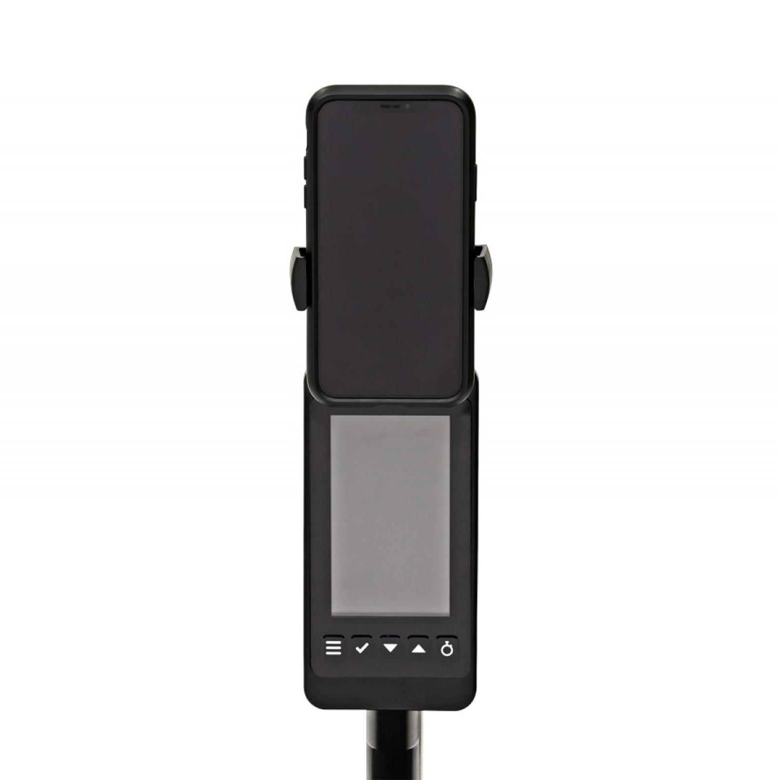 - Ergonomic handle with thumb buttons to switch screens mid-row