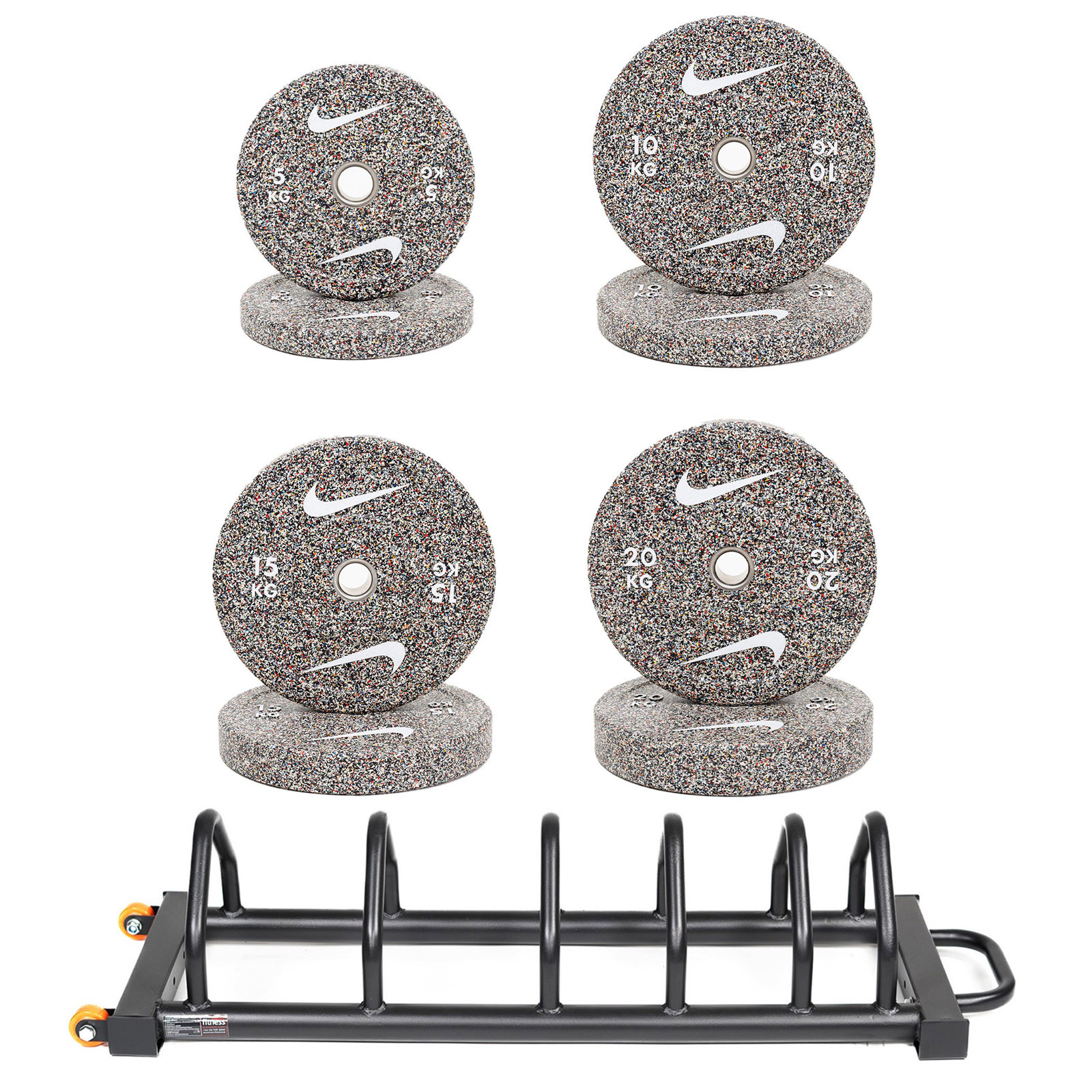 Each plate contains at least 30% Nike Grind rubber, a recycled material from Nike's footwear production. This sustainable approach doesn't just reduce waste but also creates a high-performing plate that stands up to intense lifting sessions. Every batch carries its unique look due to the seasonal changes in Nike footwear colour palettes, offering a limited-edition aesthetic to every set.