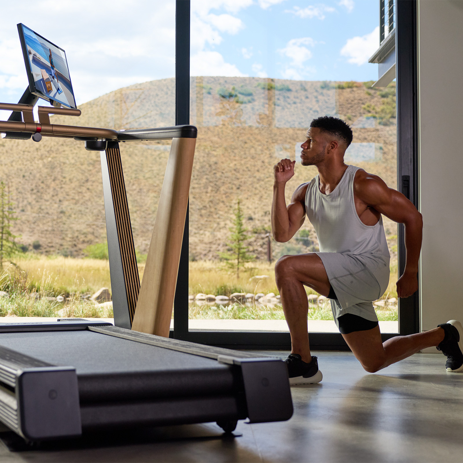 - A pivoting 24” HD touchscreen that immerses you in runs, then turns for strength, yoga, and more