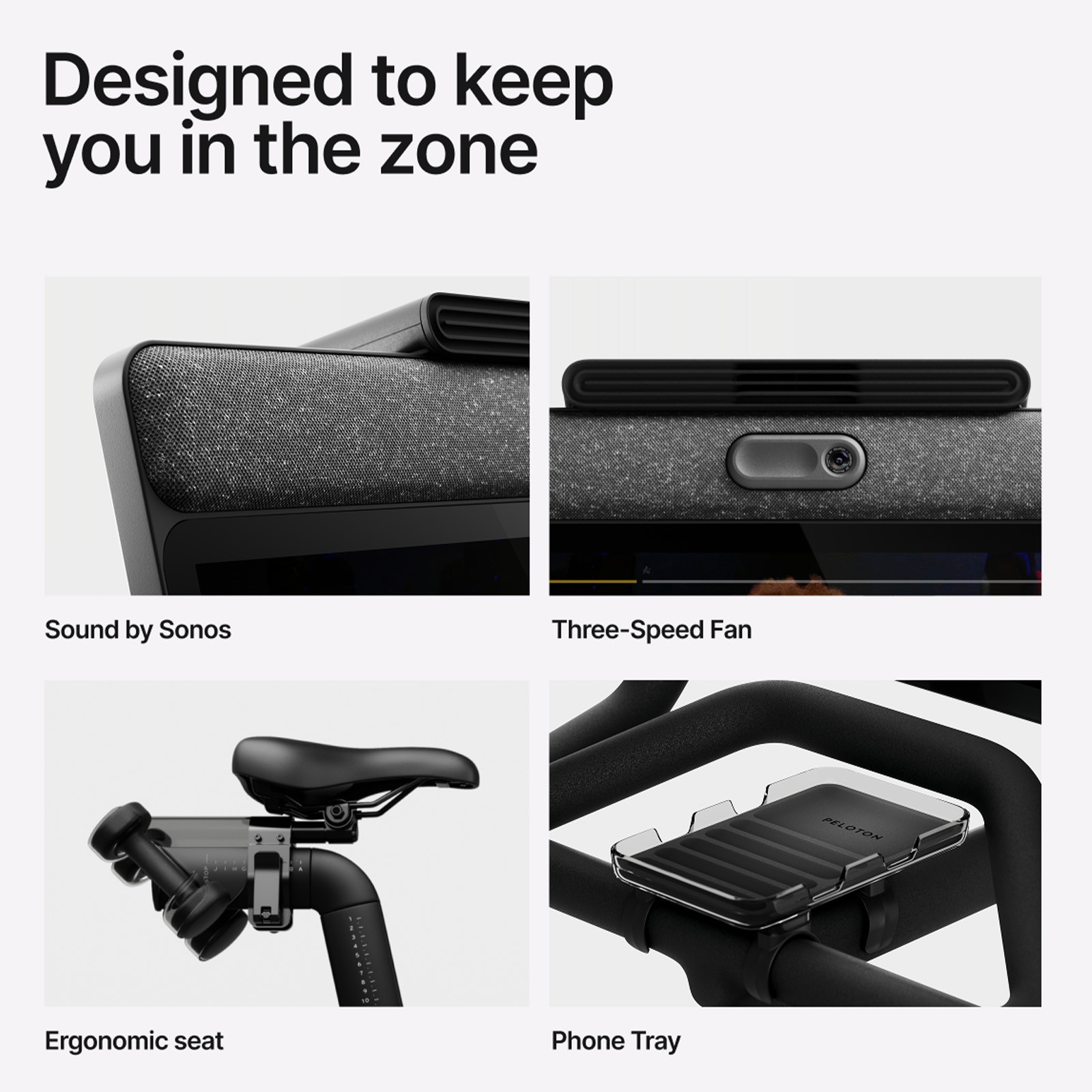 A Peloton All-Access Membership (£45/mo) must be purchased for your entire household to access all Peloton content and applicable features on your Peloton hardware. Age, height, and weight restrictions apply and are subject to the limits set out in Peloton’s Membership Terms. Activate your Membership during Bike+ setup.