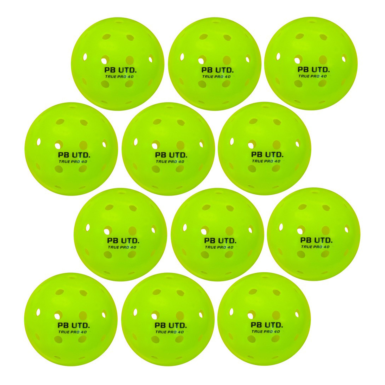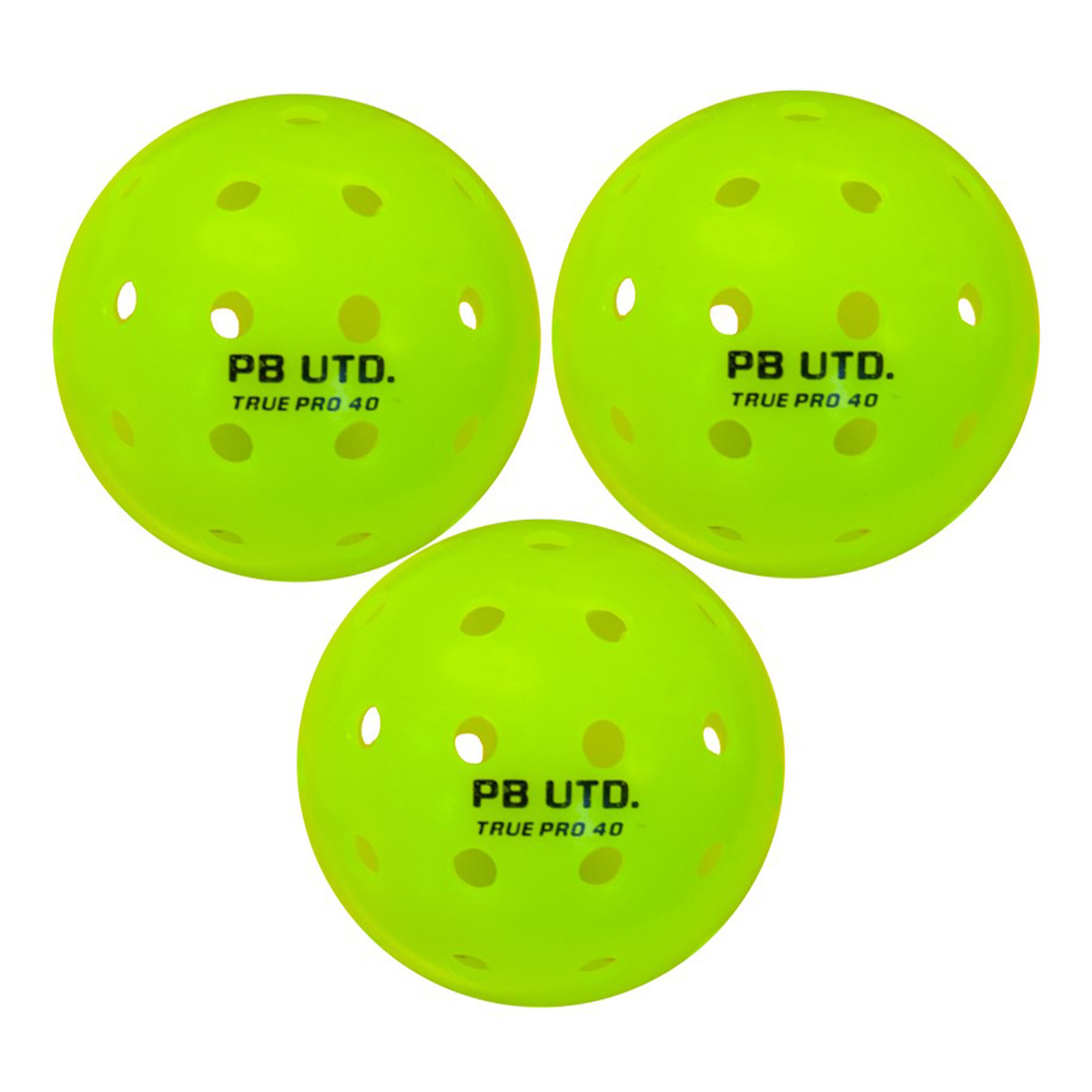 The True Competition Ball from Pickleball United is used in tournament play. It has a steady bounce and consistent spin, with a bright colour that’s easy to see on court. Made from durable TPU plastic, it holds up well in different weather conditions.
