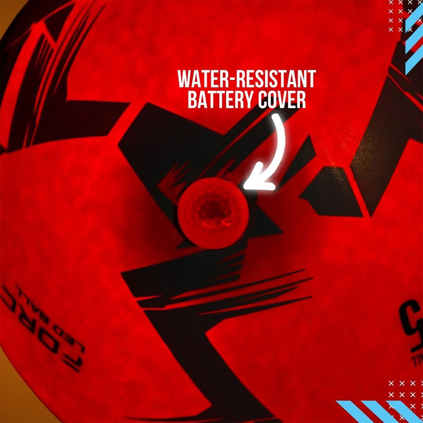 The ball comes in regulation size 5 with a tough rubber outer that handles regular games. A rechargeable battery powers the lights, and the water-resistant battery cover protects the electronics.