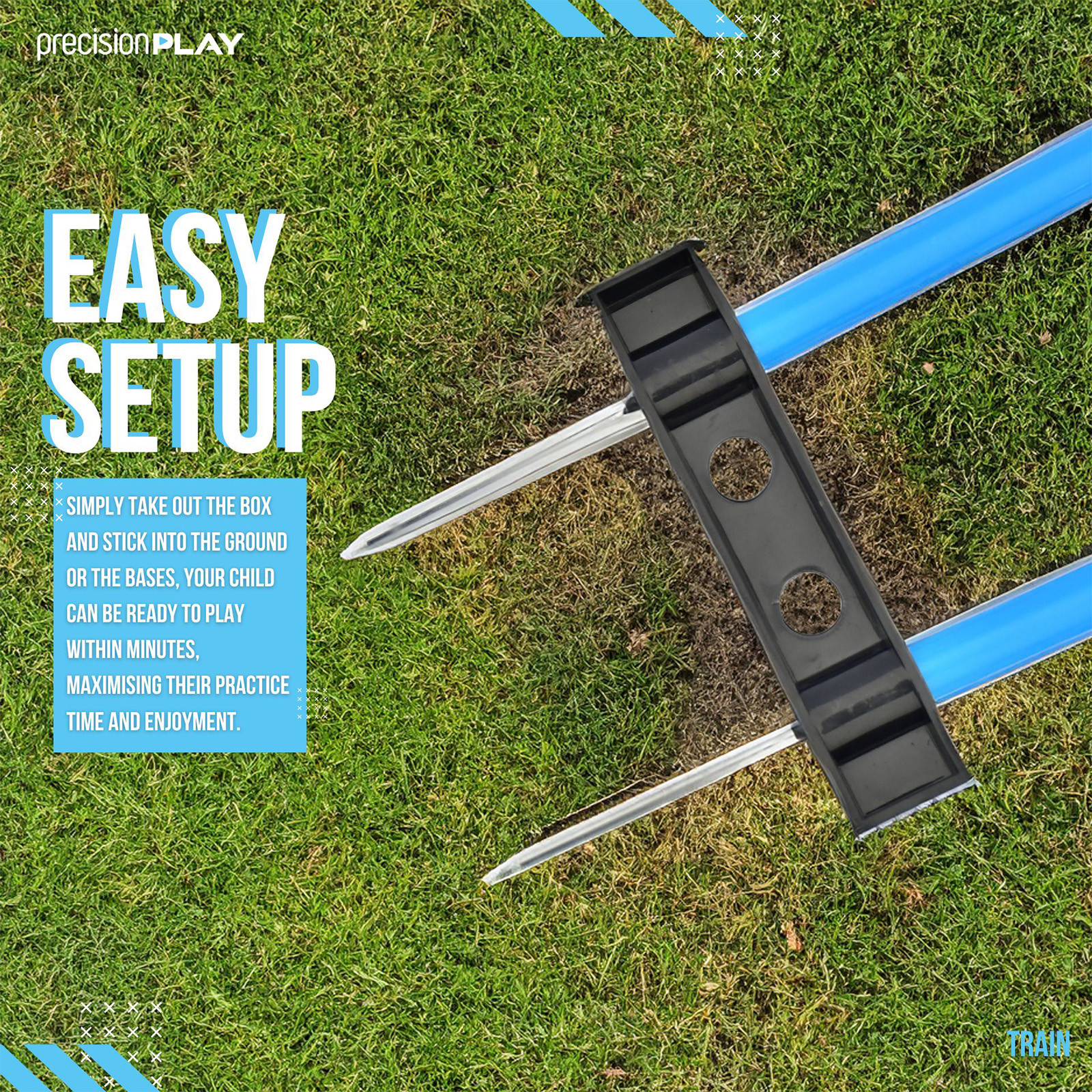 Each mannequin stands 4 ft tall with two galvanised spikes that push into the grass. Move them around the garden and change the setup as you train.