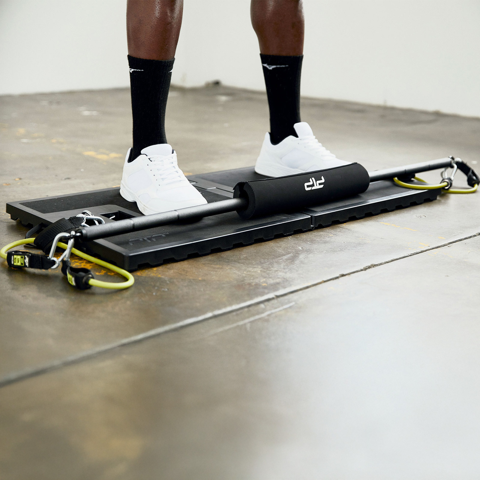 The PTP Resistance Platform System brings gym-style training into a portable format that fits your space. It’s designed for exercises you’d normally do with free weights – think squats, deadlifts, presses, and rows – but swaps the heavy plates for sturdy resistance tubes. The platform anchors the tubes securely, the bar clips in smoothly, and the bar pad keeps things comfortable when the weight’s across your shoulders or hips. With light and medium tubes included, you can train for strength, muscle endurance, or mobility, adjusting the load by clipping on more or fewer tubes. And if you’re not sure where to start, the free PTP App has guided exercises to follow, with a paid version available if you’d like more structured programmes.
