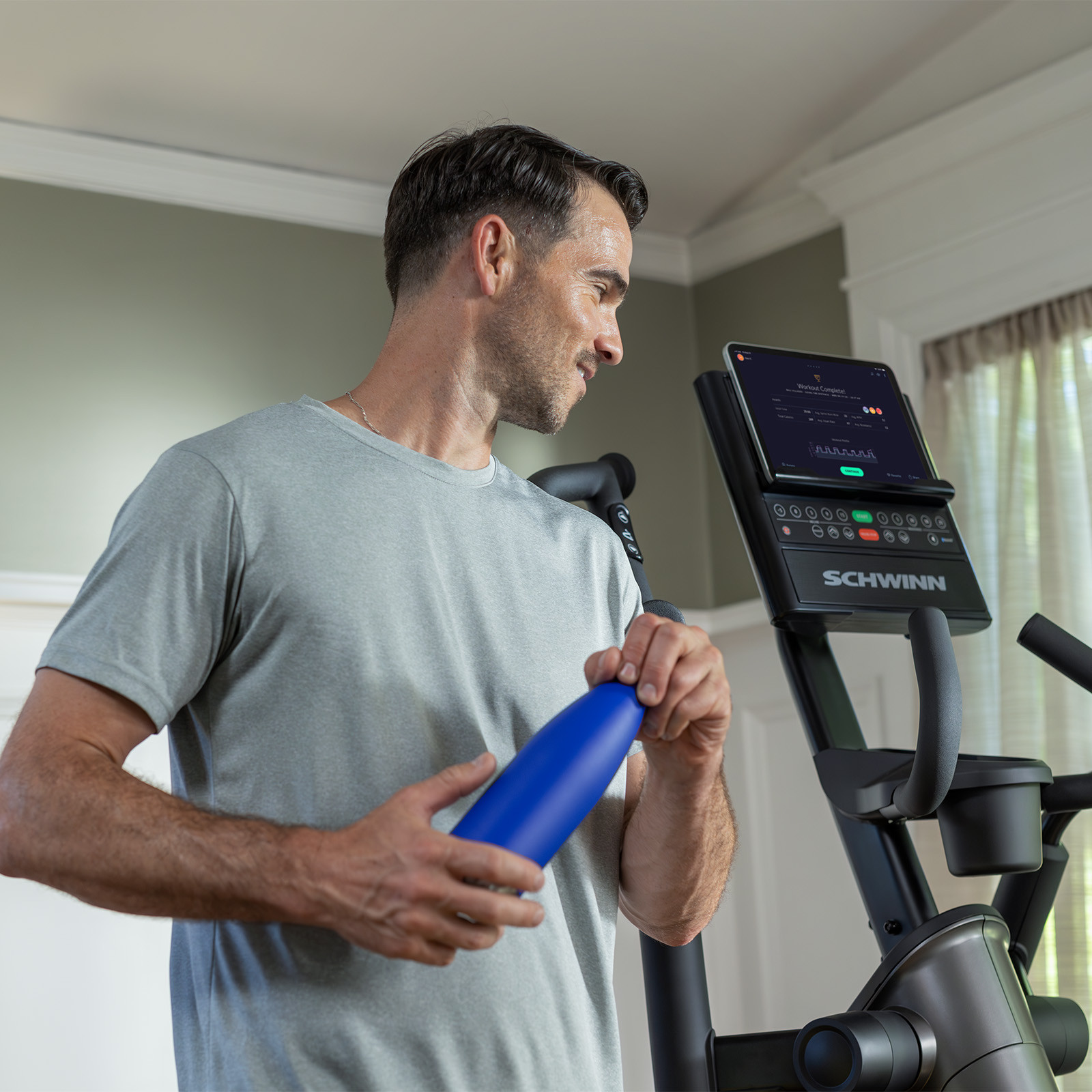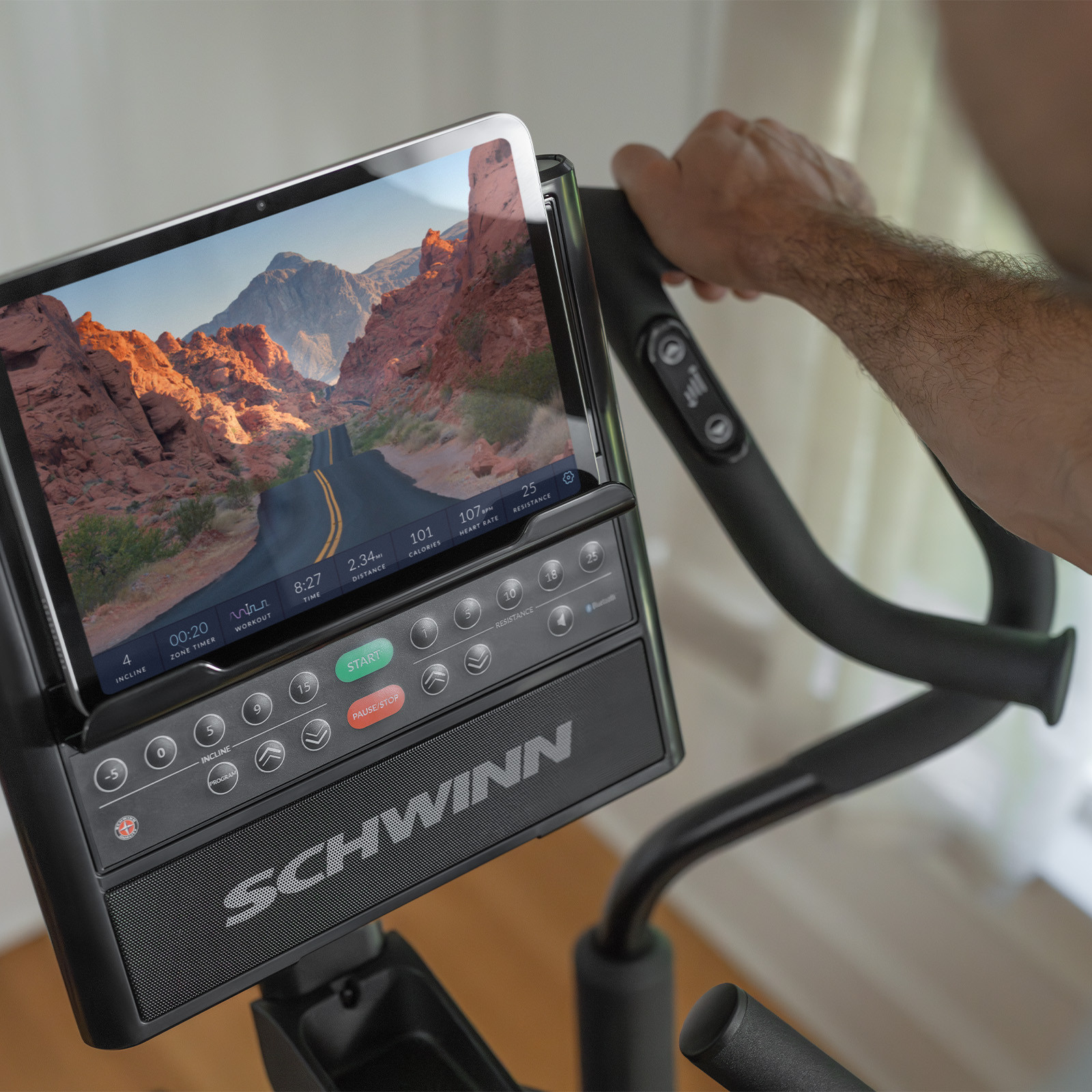 Any tablet shown in product imagery is for display purposes only and is not included with the Schwinn 590E elliptical.