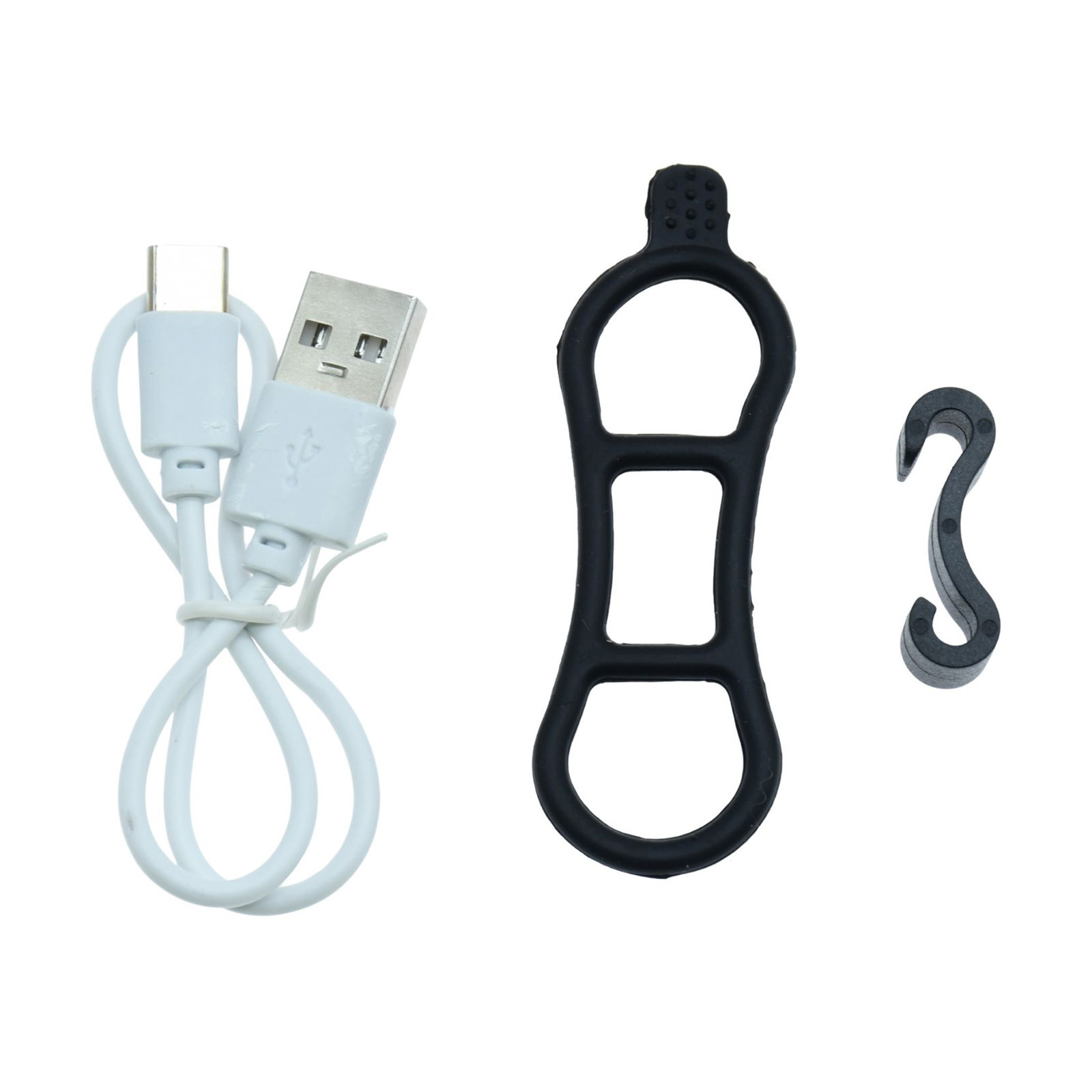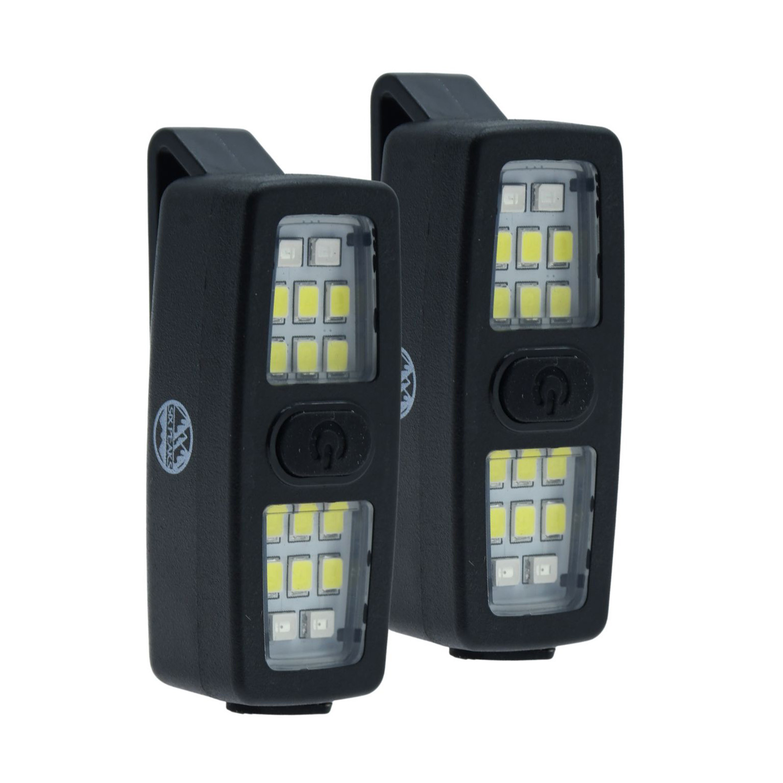 Included: 2x Six Peaks LED clip-on lights (black), 1x USB-C charging cable