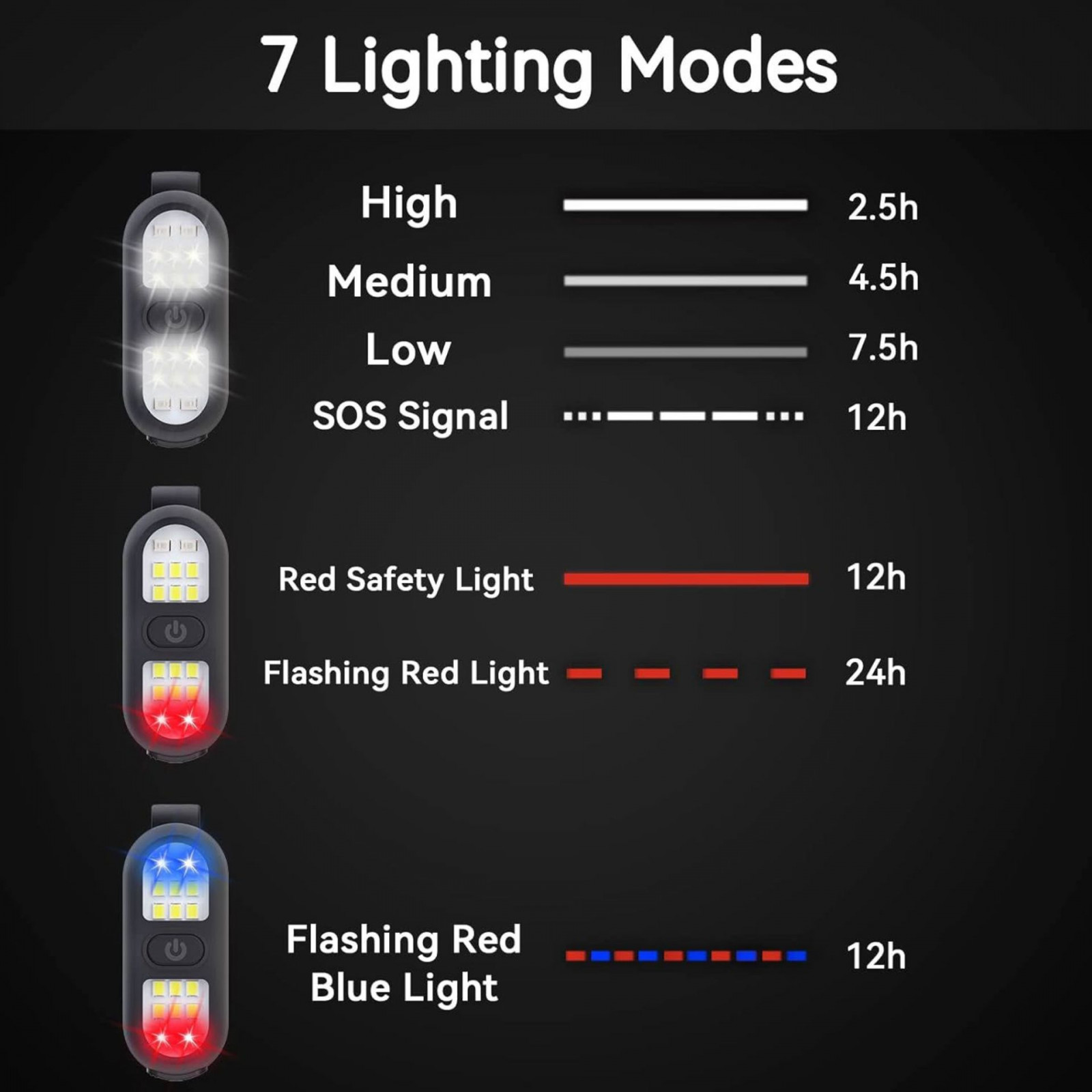 Red and blue flash runtime: Up to 12 hours