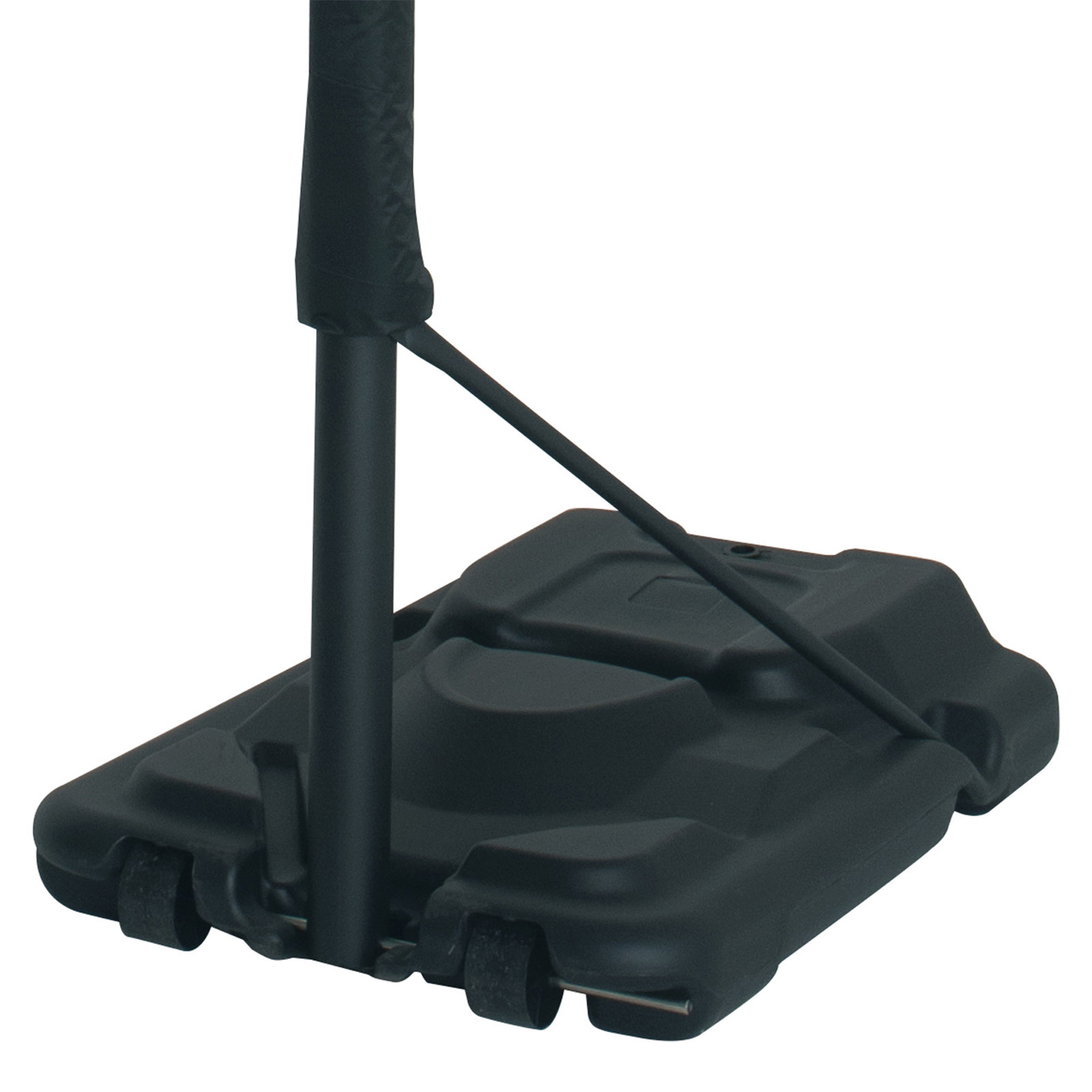 Fill the moulded HDPE base with sand or water to keep the hoop steady during play, then roll it out of the way using the wheels.