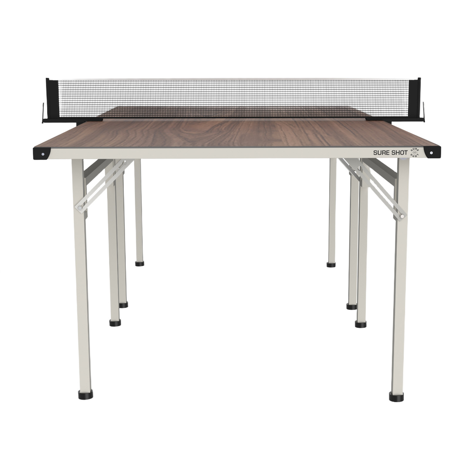 The table arrives fully assembled and includes a clip net and post set. Open the legs, clip on the net and it’s ready for a game.