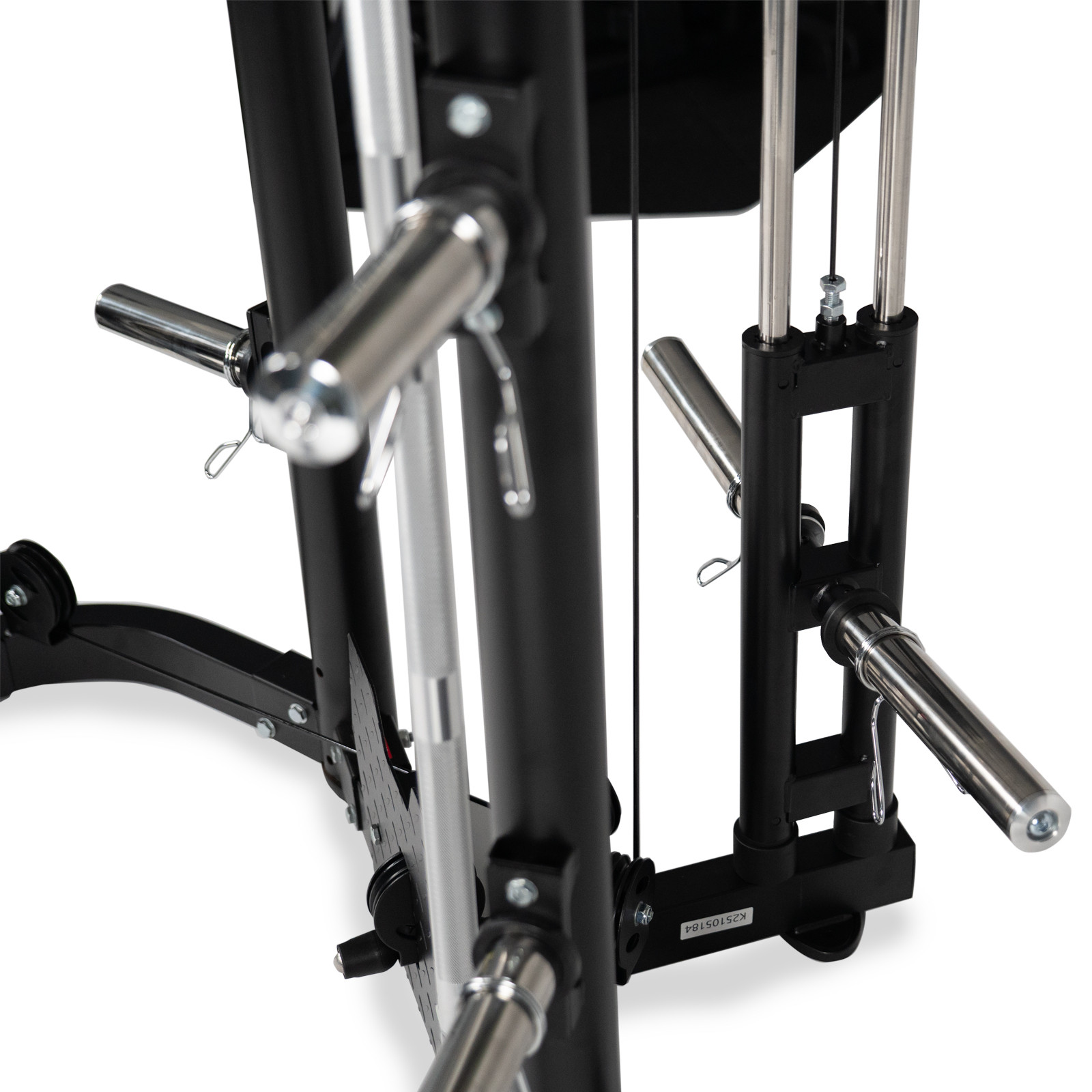 The MS30 brings a Smith station, a dual-pulley trainer, and a full rack together in a tight footprint, so you can move easily between barbell work, cables, and bodyweight exercises. The Smith bar runs on a fixed vertical track for controlled squats and presses. The pulleys adjust through 16 positions, giving you plenty of cable exercises to work through. The rack covers your free-weight lifts, backed up by J-hooks, spotter arms and a solid pull-up bar. Attachments add even more exercise options.