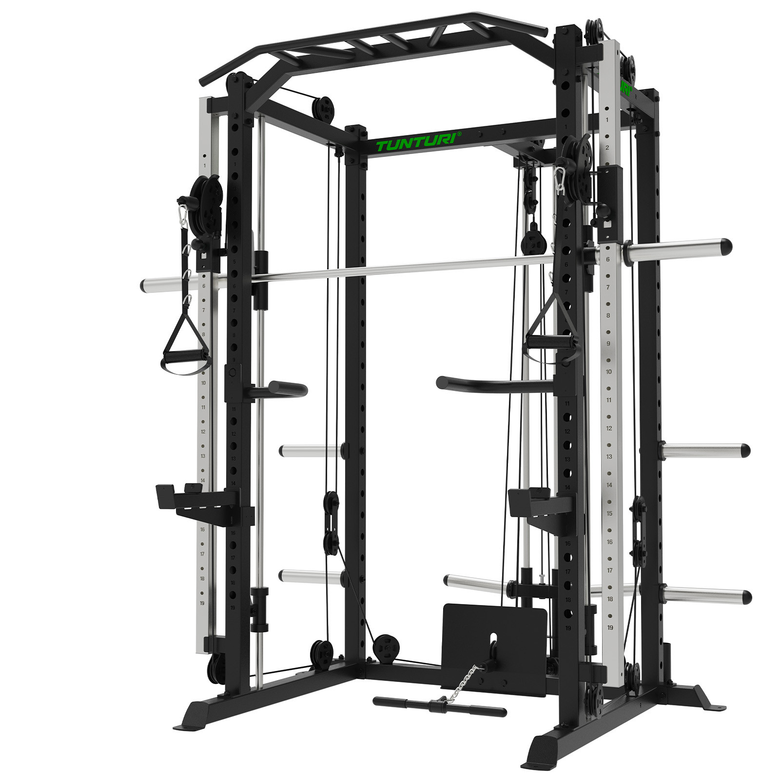 The Tunturi SM90 Smith Machine is not just a piece of equipment; it's a versatile multi-gym that opens up a world of possibilities for your fitness journey. With six integrated workout stations and a maximum workload of 200kg, it's designed to cater to the needs of both beginners and fitness enthusiasts, offering a wide range of workout options that will keep you excited and motivated.