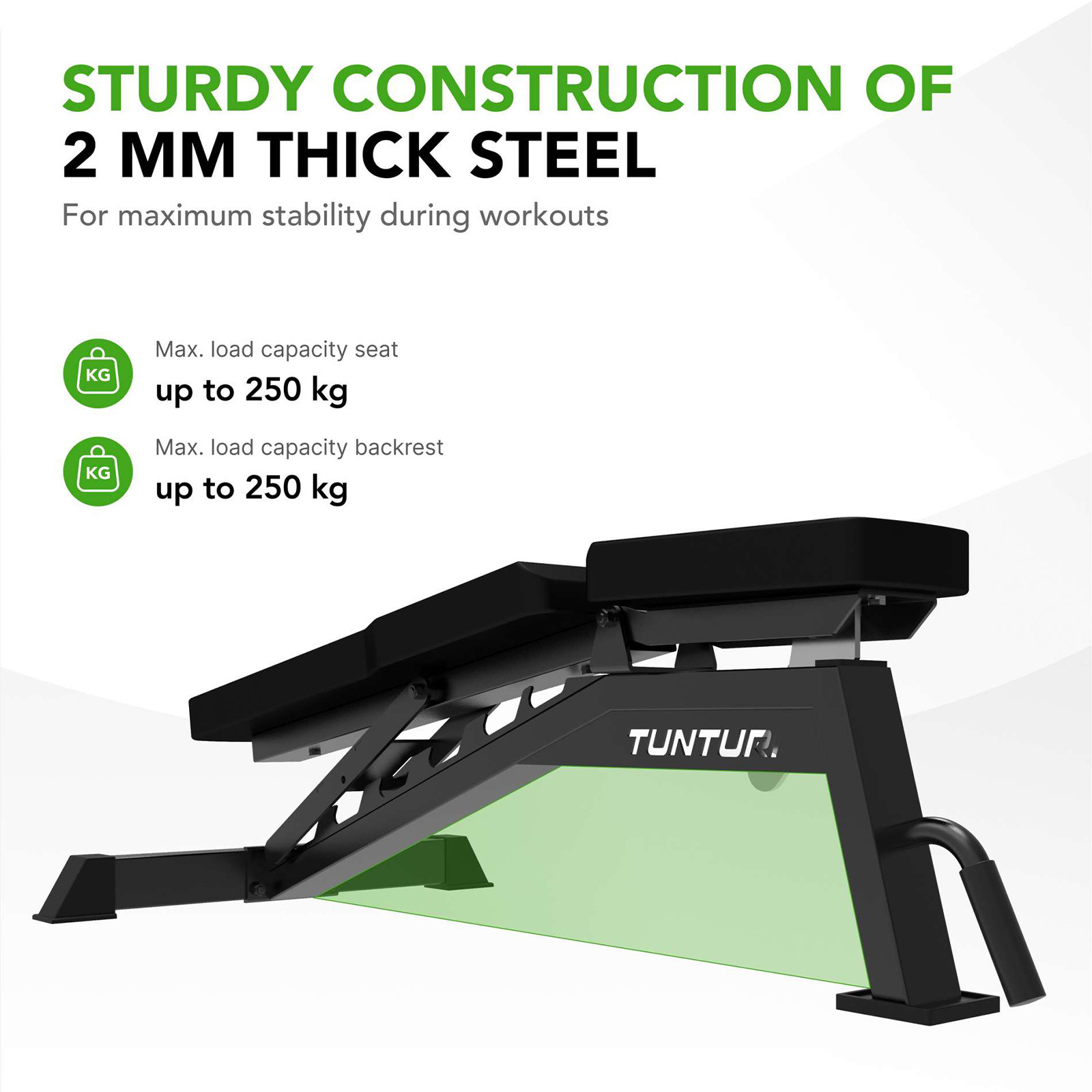 The Tunturi UB70 is ideal for intensive strength training with a maximum load of 250 kg. Perfect for bench press, shoulder press and dumbbell exercises, the UB70 is the ideal companion for Tunturi SM70.